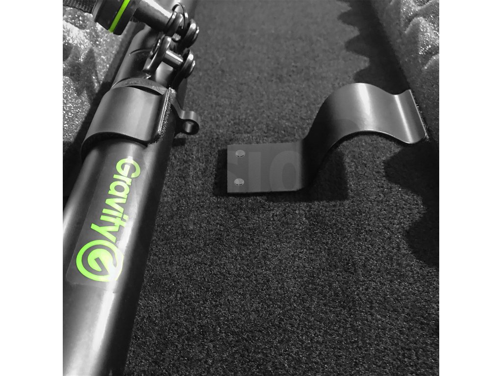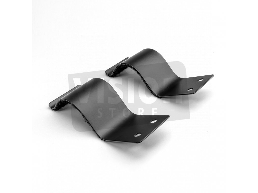 Upevňovací svorky z černé pružinové oceli pro upevnění trubek, nožiček atd. Pro ochranu trubek proti poškrábání je uvnitř připevněna plsť.
