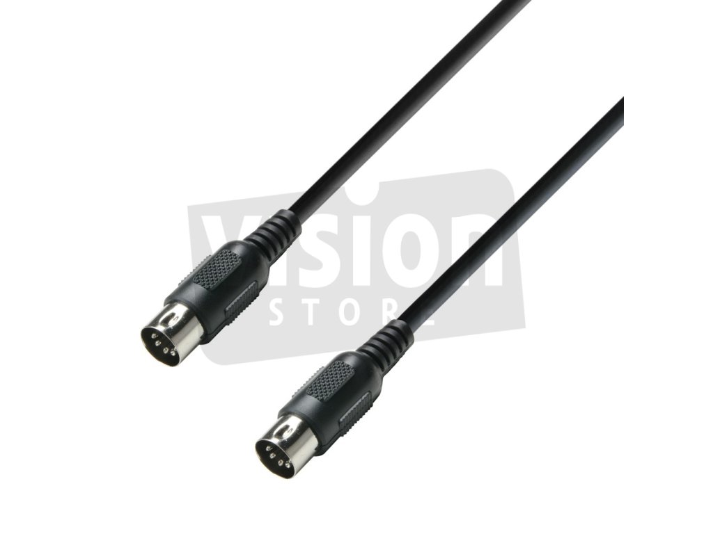 MIDI kabel připravený pro studio a pódium pro použití s klávesami, expandéry nebo jiným MIDI zařízením. Obsahuje pětikolíkové kovové DIN zástrčky pro kvalitní připojení na jevišti nebo ve studiu.