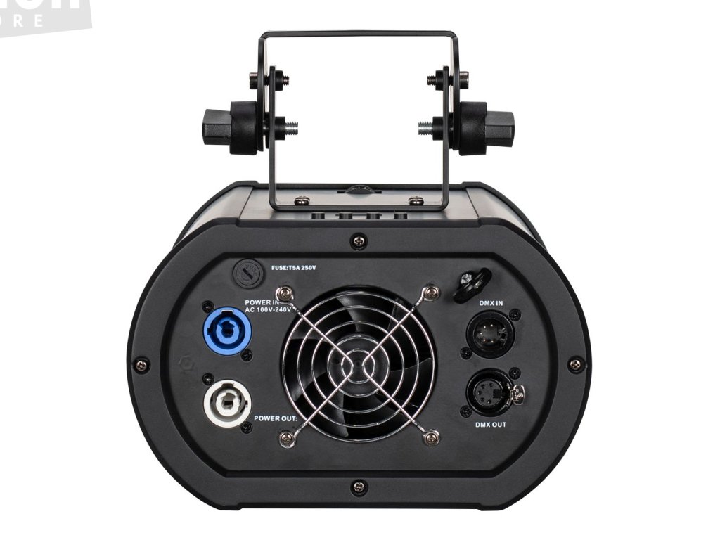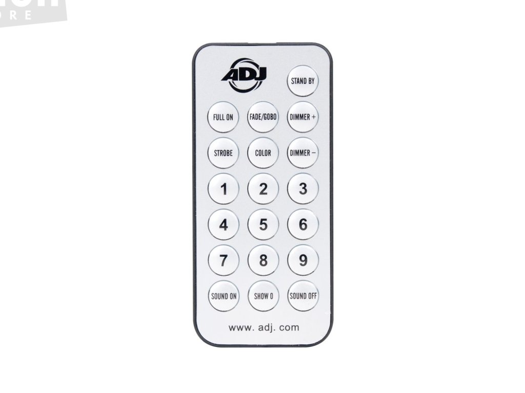 Toto svítidlo je vybaveno dvěma režimy DMX kanálů a lze jej ovládat pomocí DMX, dodaného bezdrátového IR dálkového ovladače nebo pomocí vestavěných programů, což vám dává plnou kontrolu nad nastavením osvětlení. Digitální DMX displej se 4tlačítkovým menu usnadňuje navigaci, zatímco manuálně nastavitelný zoom a zaostřovací objektiv s možností stmívání 0–100 % (prostřednictvím DMX) vám umožní jemně doladit osvětlení přesně podle vašich specifikací.