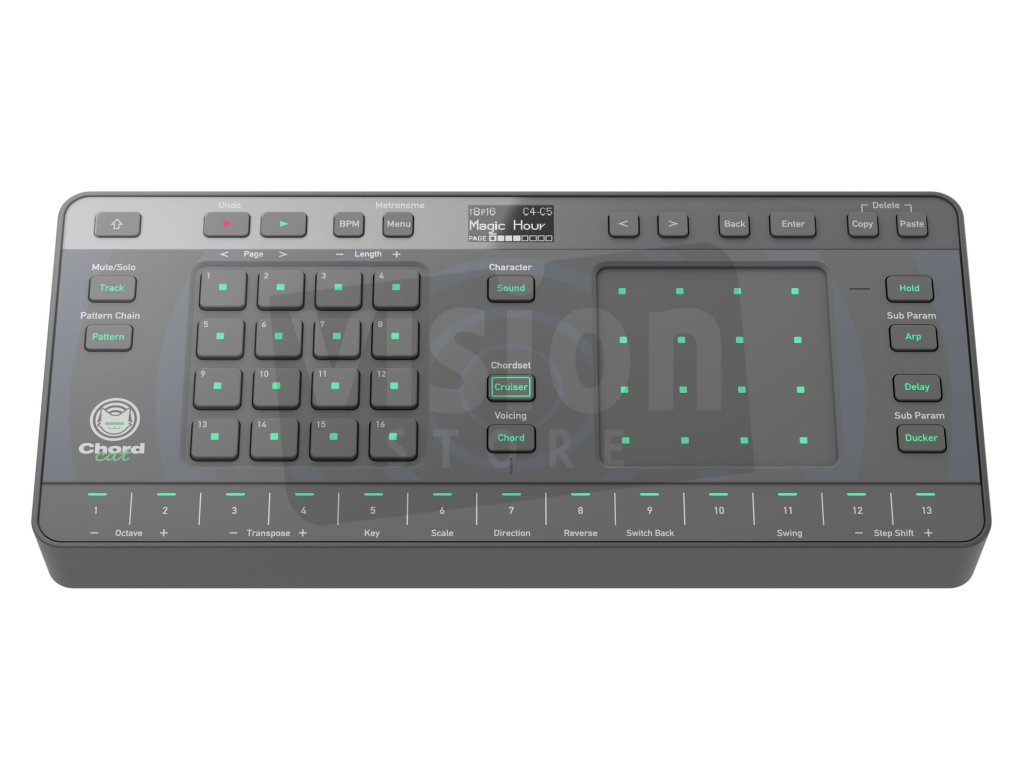 Režim Chord Cruiser ti pomocí chytrého algoritmu nabídne desítky hudebně ladících akordů, ze kterých si jednoduše vybereš ten pravý. Akord si přiřadíš ke klávese a groovebox ti hned navrhne další – hudba tak vzniká přirozeně a bez záseků. Ideální pro producenty, skladatele i úplné začátečníky.