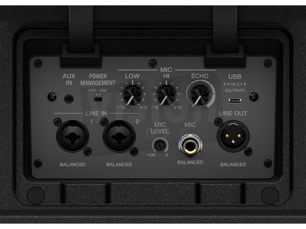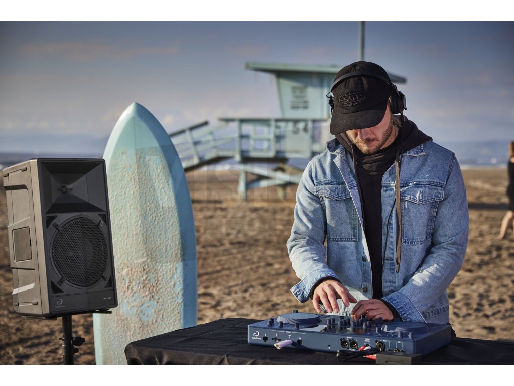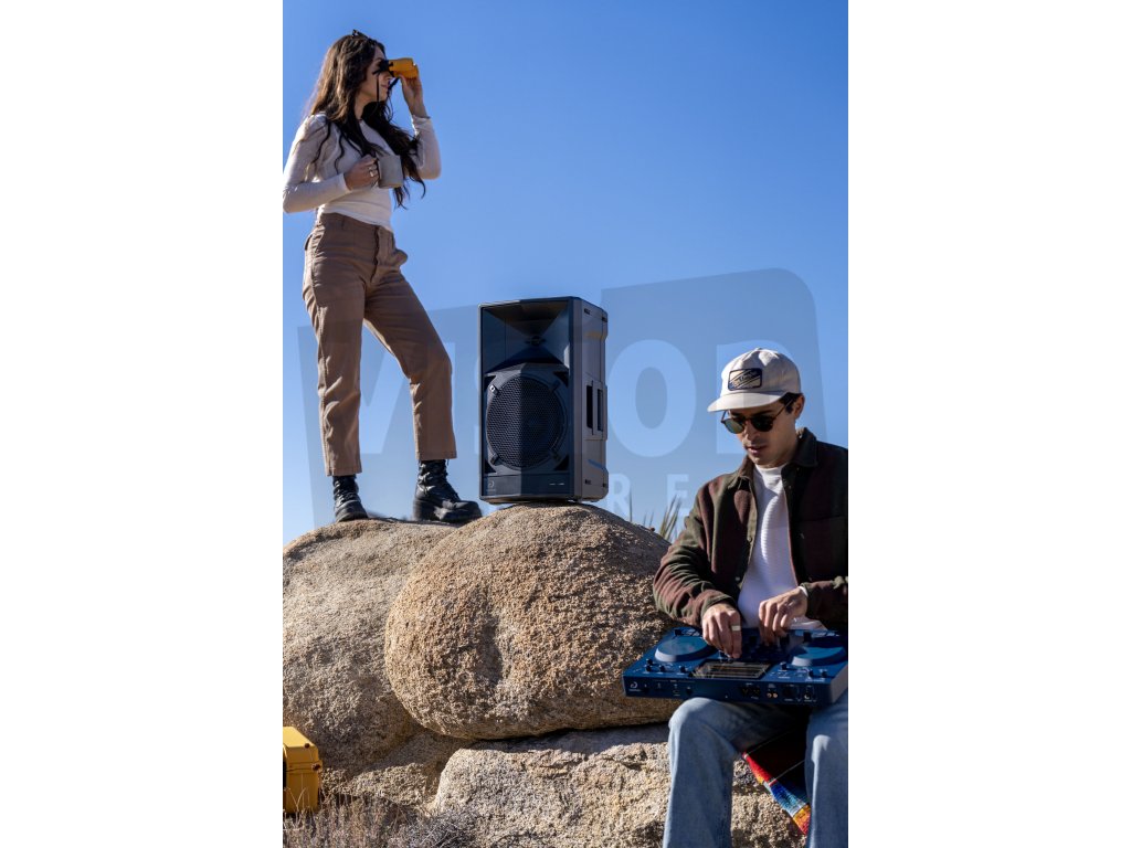 8", přenosný, 2-pásmový, bateriový DJ reproduktor s výkonem 110W a funkcí SonicLink (s dobíjením uvnitř reproboxu), výdrž baterie 8 hod, ochrana IPX4, Bluetooth, USB-C power, 2x Line In Combo, Mic, Aux, Line Out, transportní kolečka, možnost umístění na stojan, hmotnost 12,7 kg
