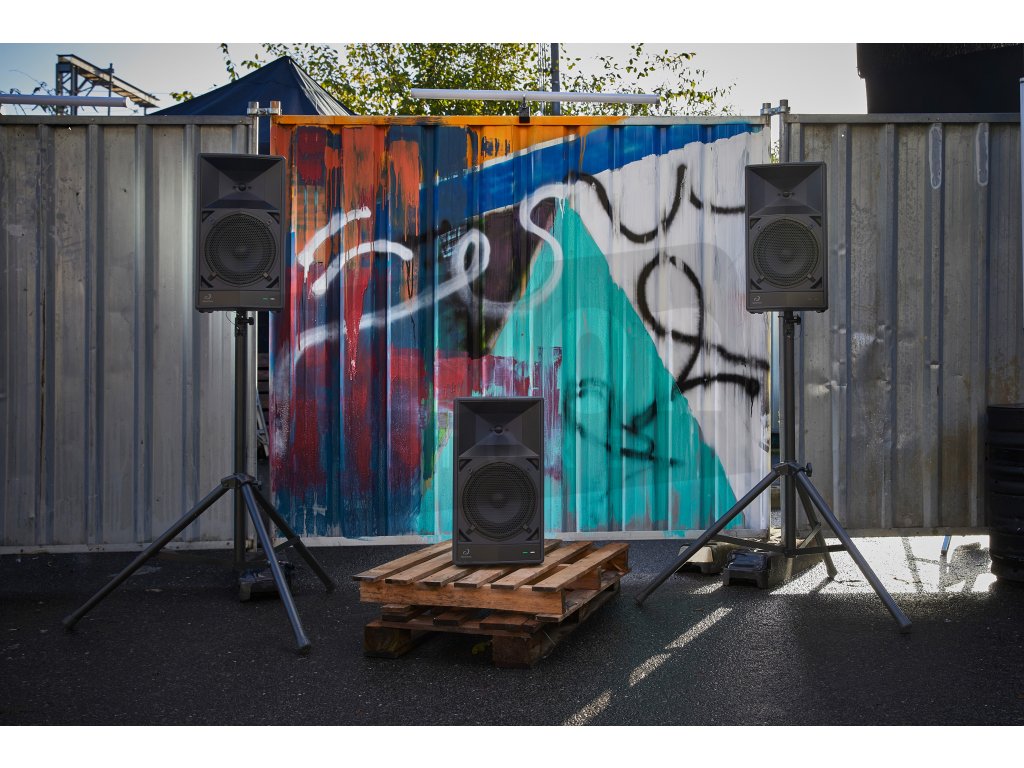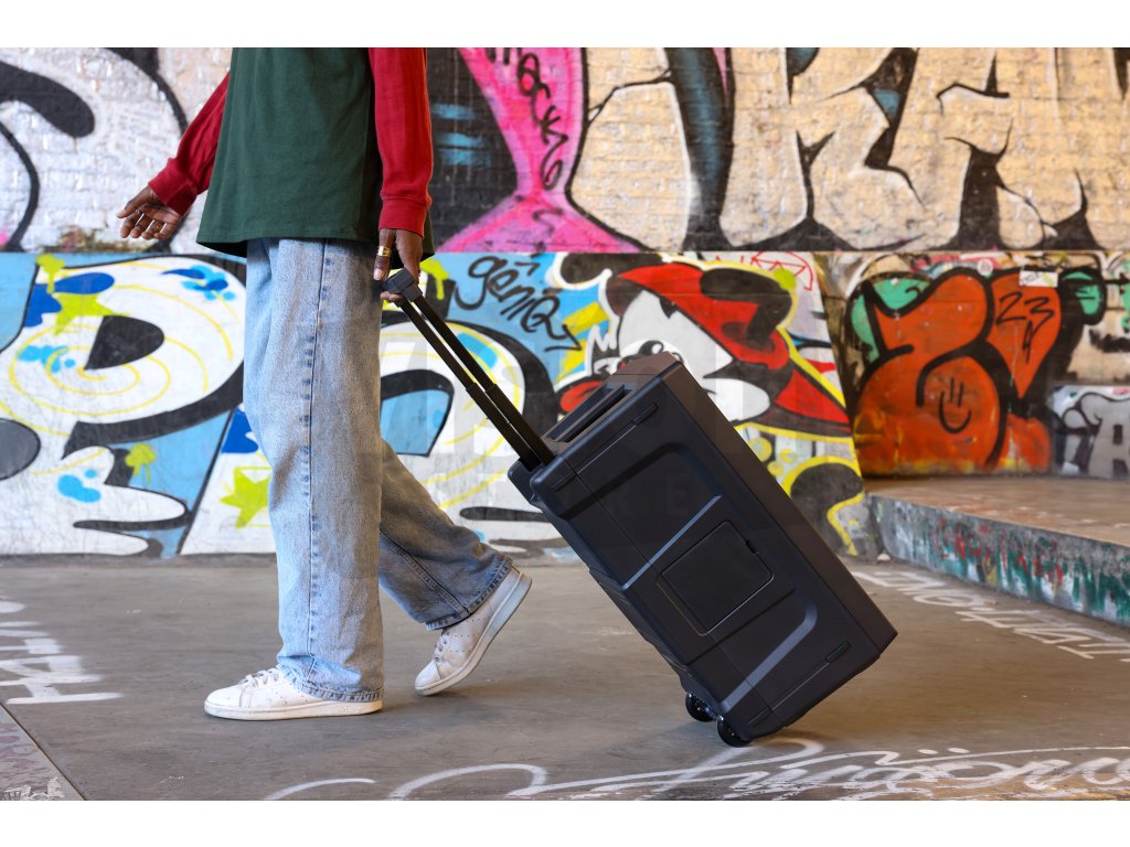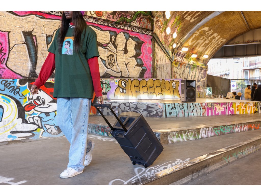Teleskopická rukojeť, kolečka a přídavná madla umožňují snadné přenášení WAVE-EIGHT na jakékoli místo. K dispozici je také vestavěná příruba pro umístění na stojan pro dosažení větší výšky a tím i lepšího pokrytí na různých místech.