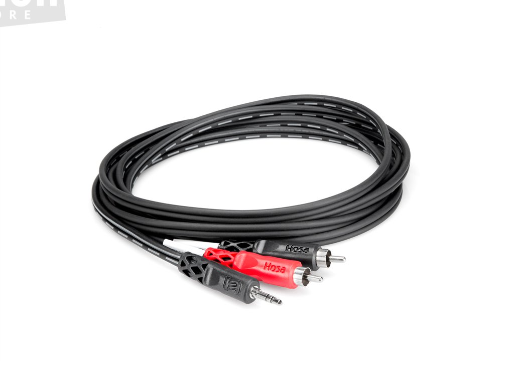 Stereo breakout kabel Hosa Pro s konektory 3.5 mm TRS / 2x RCA. Určen k připojení digitálního audio přehrávače nebo podobného zařízení k stereo systému. Délka 4,5m.