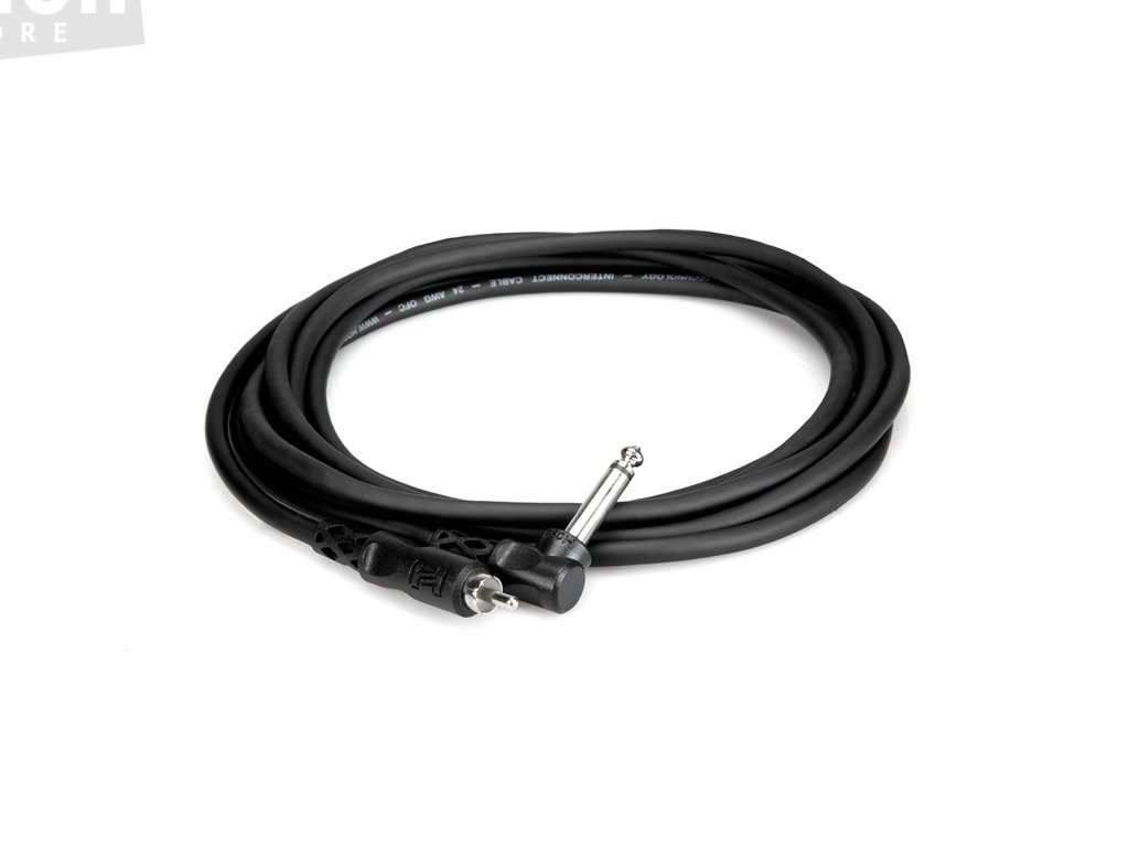 Nesymetrický kabel Hosa k propojení konektory zalomený 1/4 TS / RCA. Ideální pro připojení profesionálního audio zařízení ke spotřebním audio komponentům. Délka 0,9m.