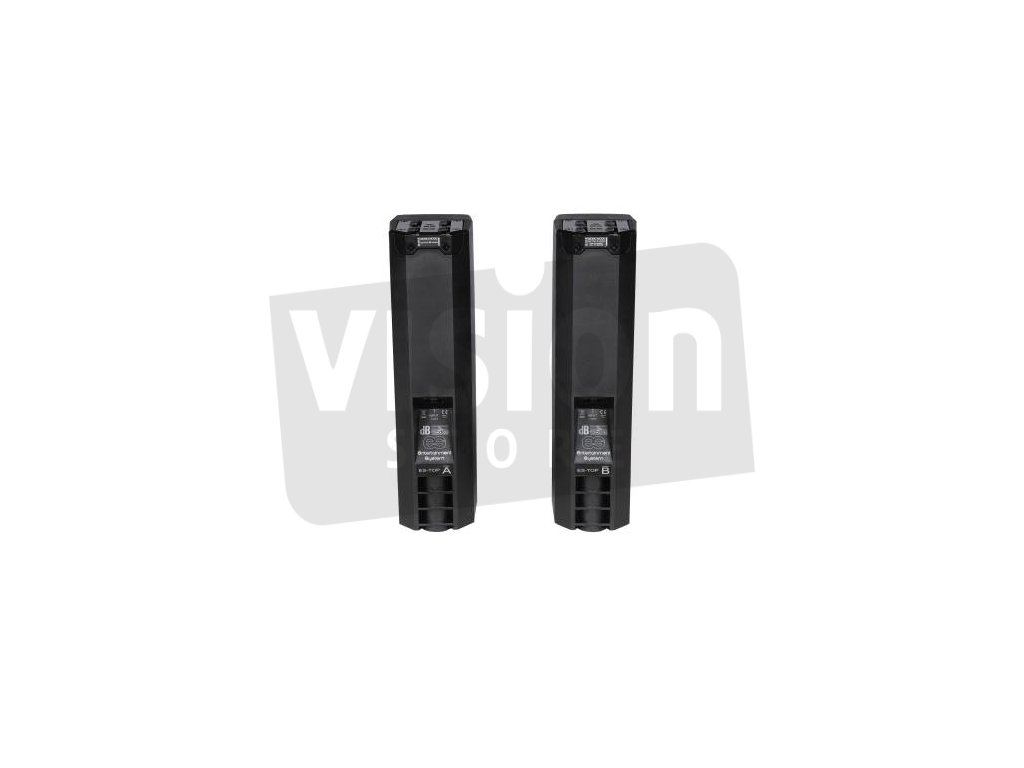 1 MONO REŽIM: Dva satelity jsou připojeny shora navrch (díky rychlému a snadnému posuvnému systému připojení) a jsou umístěny na subwooferu pomocí tyče D25 mm.