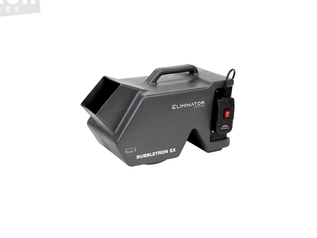Bubletron EX od Eliminator Lighting je menší a lehký bublinkový stroj, který se vyznačuje rychlostí produkce bublin srovnatelnou s většími stroji. Jeho přední nádržka na kapalinu EZ-Access usnadňuje používání a čištění Bubbletronu EX.