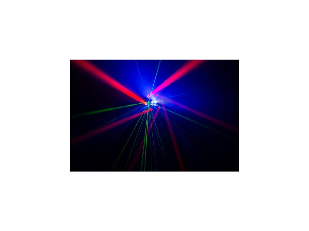 10 × 15W CREE (RGBW, 4 v 1) + 1 × 100mW červený laser + 1 × 50mW zelený laser, Režim ovládání: DMX512, manuální, primární-sekundární, automatické spuštění a zvukově aktivní, DMX kanál: 22, Stmívač: 0–100% lineární stmívač, Hmotnost: 3,7 kg