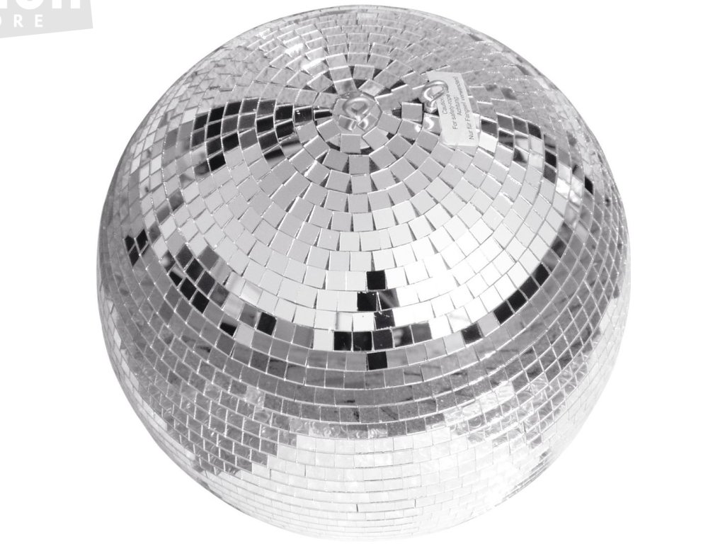 Zrcadlová koule o průměru 30 cm. Polystyrenové jádro polepené skleněnými zrcátky o rozměrech 10x10 mm, ocelová osa se dvěma kroužky pro uchycení řetízku a bezpečnostního lanka. Zrcadlová koule při nasvícení bodovým reflektorem (např. 51916000) odráží do prostoru světelné body. Na atraktivnosti efektu přidá např. nasvícení z více stran barevnými reflektory (např. 51916202). Volitelně lze použít přídavný motor (např. 50301300) k automatickému otáčení zrcadlové koule.