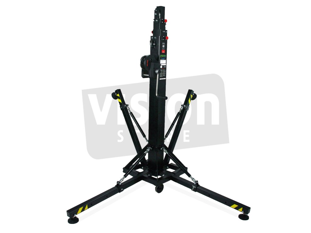 teleskopický stativ, ocelový, sklápěcí nohy pro variabilní aplikace na nerovném terénu, ocelový, max. výška 5,3m, max. 230kg, hmotnost 88 kg