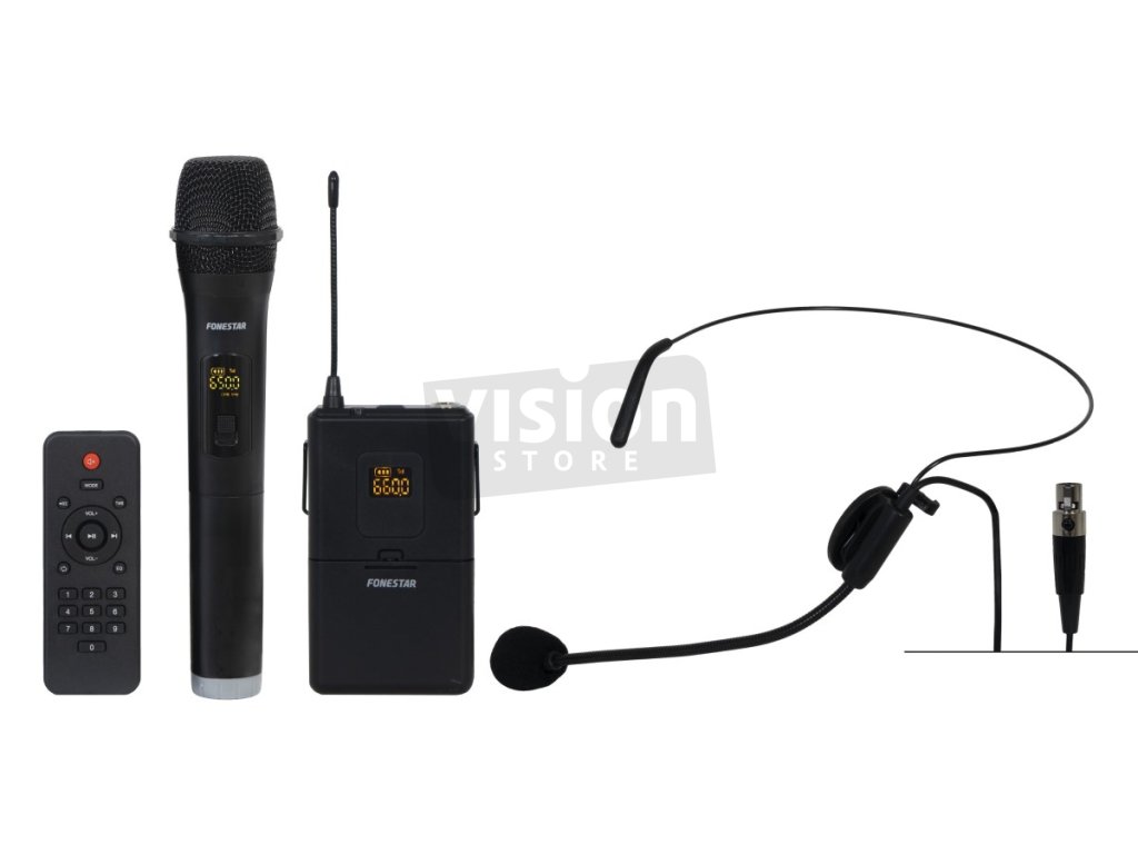 Fonestar jsou spolehlivé přenosné reproduktory, které nabídnou silný zvuk ve venkovních podmínkách. Díky kompaktnímu provedení, Bluetooth připojení a dlouhé výdrži baterie se hodí na akce, prezentace i volný čas. Součástí dodávky jsou dva bezdrátové mikrofony – ruční a náhlavní s bodypack vysílačem – které umožňují maximální volnost pohybu při prezentacích nebo karaoke vystoupeních. Kromě nich můžete připojit i další mikrofony přes dva 6,3mm MIC vstupy s individuálním ovládáním hlasitosti a tónovými korekcemi.