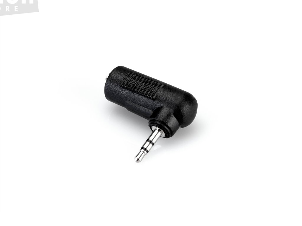 Zalomený adaptér s konektory 3.5 mm TRS / 2.5 mm TRS. Vhodný při nedostatku prostoru.