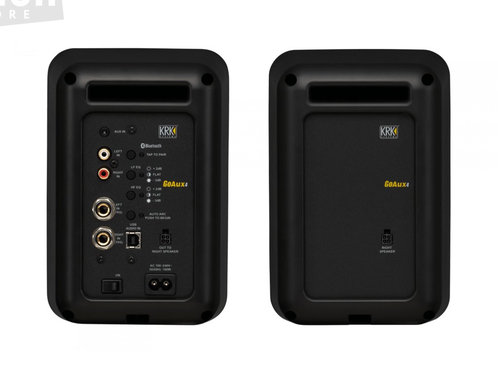 KRK GoAux 4 jsou aktivní přenosné nearfield monitory v konfiguraci 4 + 1“ s celkovým výkonem 100W s možností Bluetooth a USB připojení. Dodávají se včetně přepravní tašky, nastavitelných stojanů a měřícího mikrofonu pro vestavěnou funkci automatické korekce místnosti ARC.