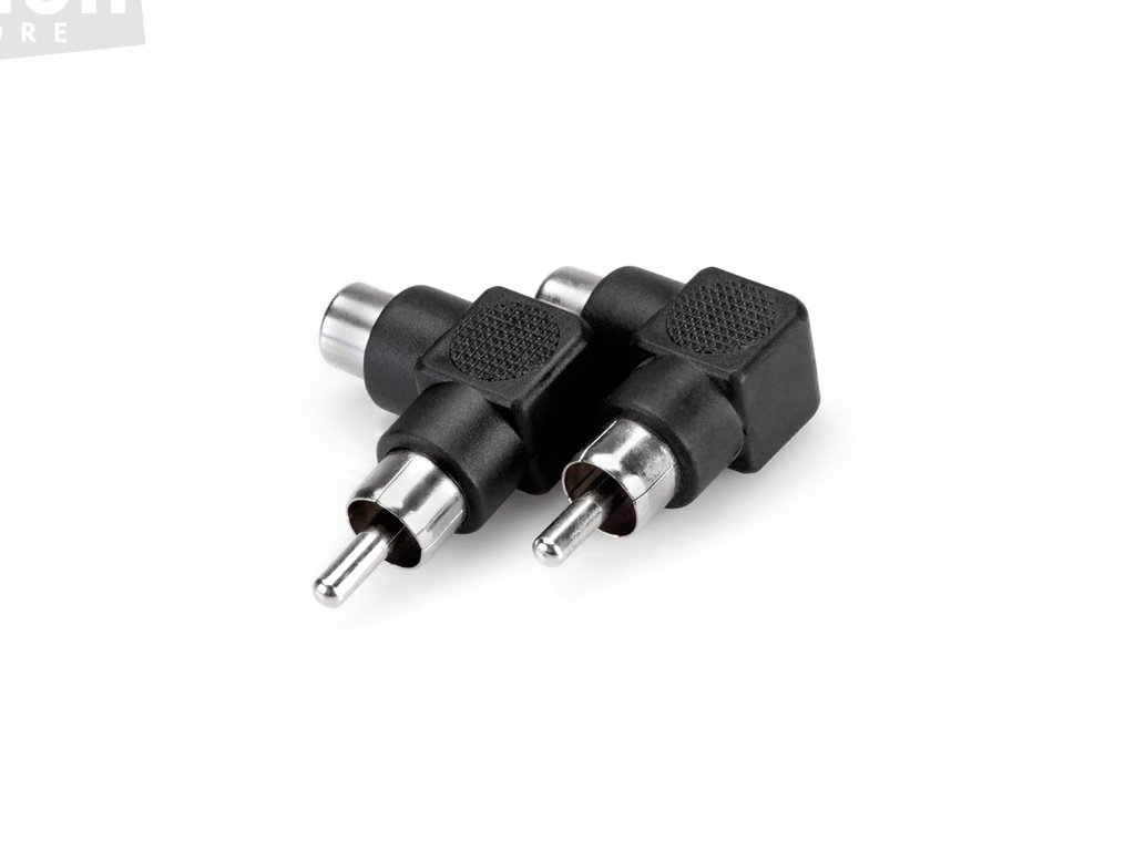 Zalomený adaptér s konektory RCA / RCA. 2 kusy. Vhodné při nedostatku prostoru.