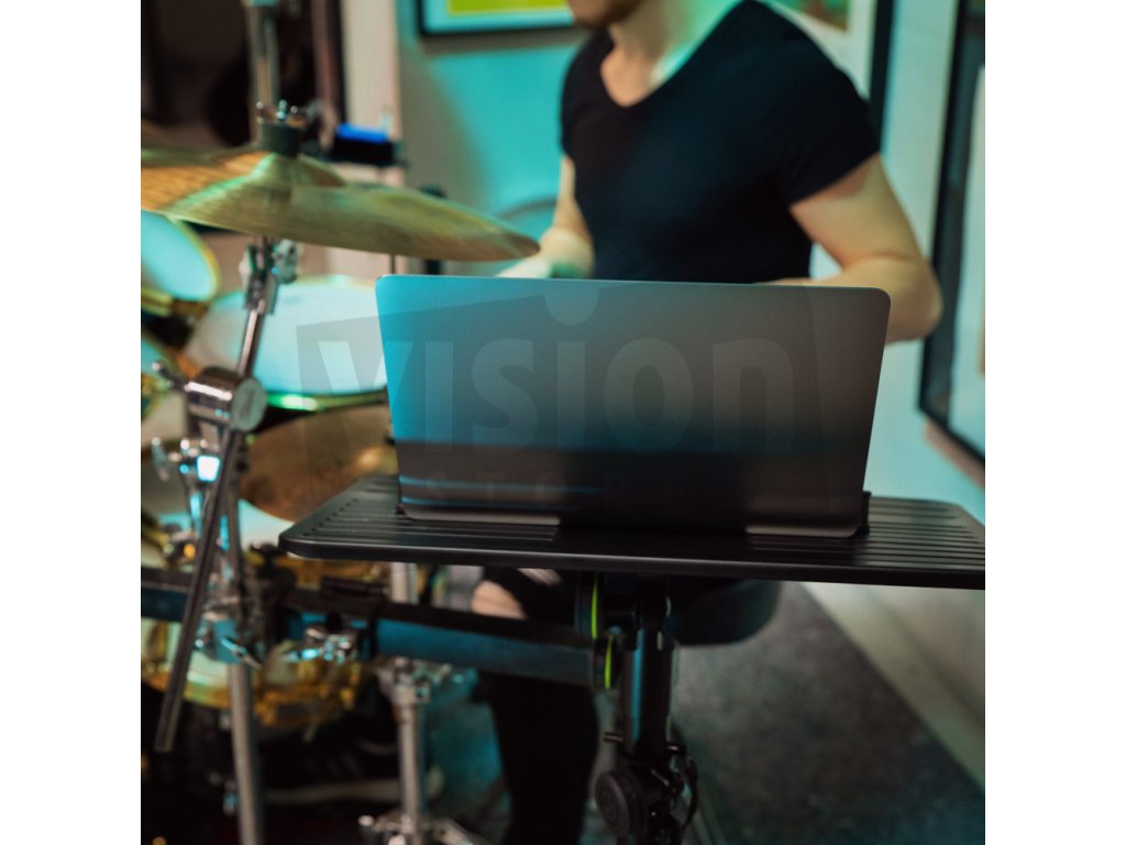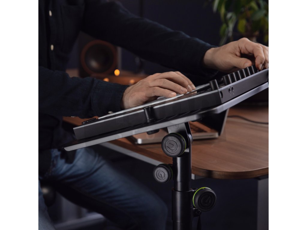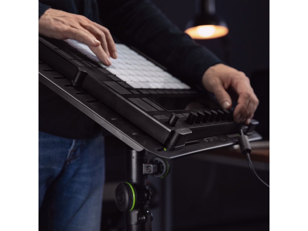 Stojan můžete také použít pro váš DJ kontrolér, mixážní pult nebo jiné vybavení, které vždy potřebujete na dosah ruky. Montážní desku lze plynule naklánět o 180°, což znamená, že ji lze použít jak ve vertikálním, tak v horizontálním provedení. Lze jej také snadno odšroubovat pro použití v terénu.