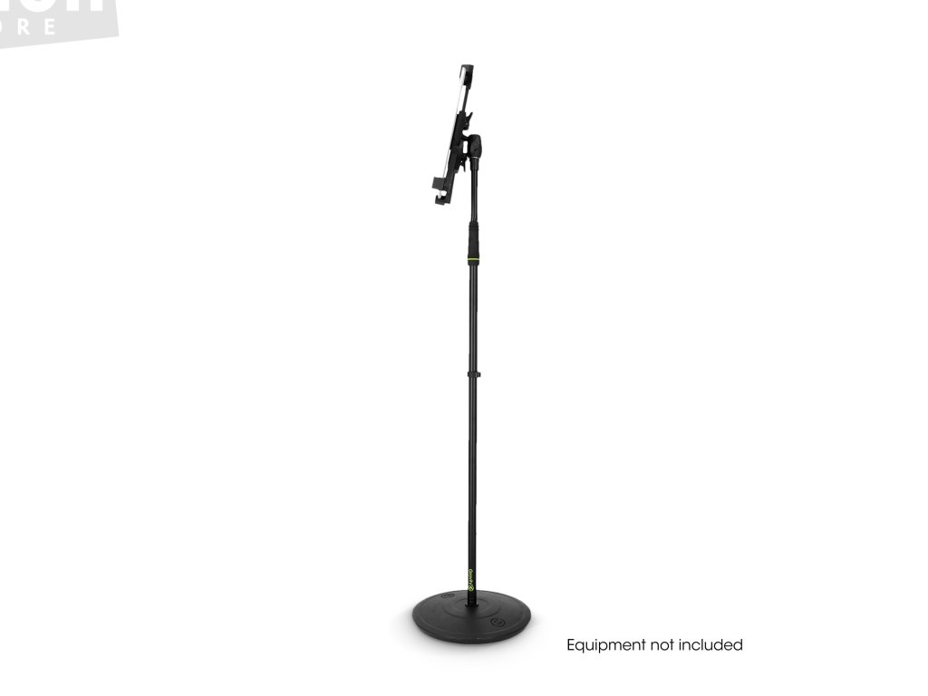 Držák na tablet a mikrofonní stojan pro cestování, s kulatou základnou.