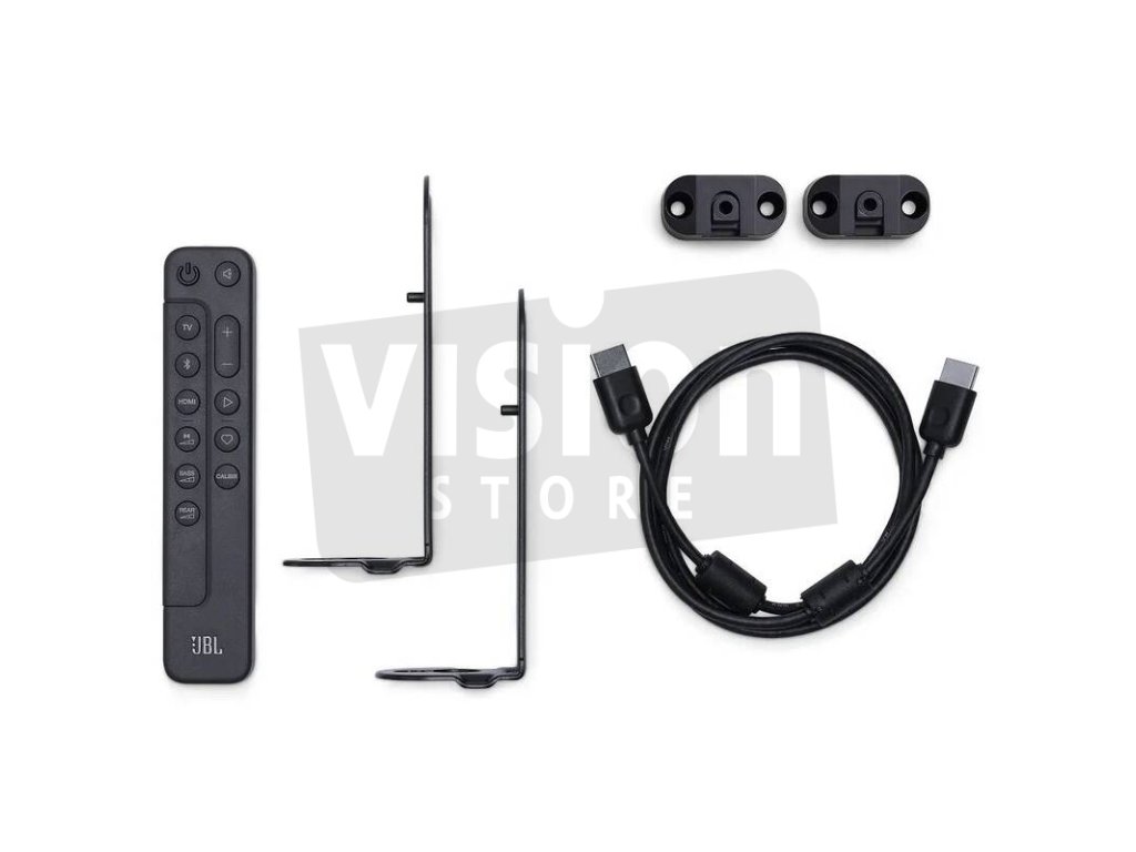 - 2 x držák na stěnu ve tvaru L (pro hlavní soundbar) + 2 x držák na stěnu ve tvaru U (pro prostorové reproduktory) se šroubky
