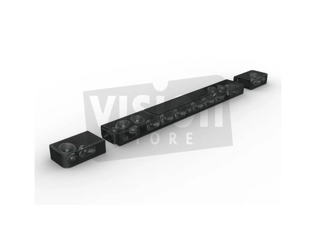 - Převodník soundbaru: 6 x (46 x 90) mm oválné měniče, 5 x 0.75” (20mm) tweetery, 4 x 2.75” (70mm) nahoru proudící širokopásmové měniče