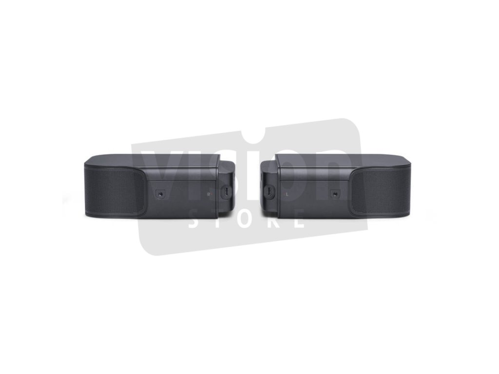 Zažijte skutečný prostorový zvuk bez problémů s dalšími kabely a napájením. Jednoduše umístěte dva odnímatelné bateriově napájené prostorové reproduktory za sebe a nechte se unést úžasným zvukem.