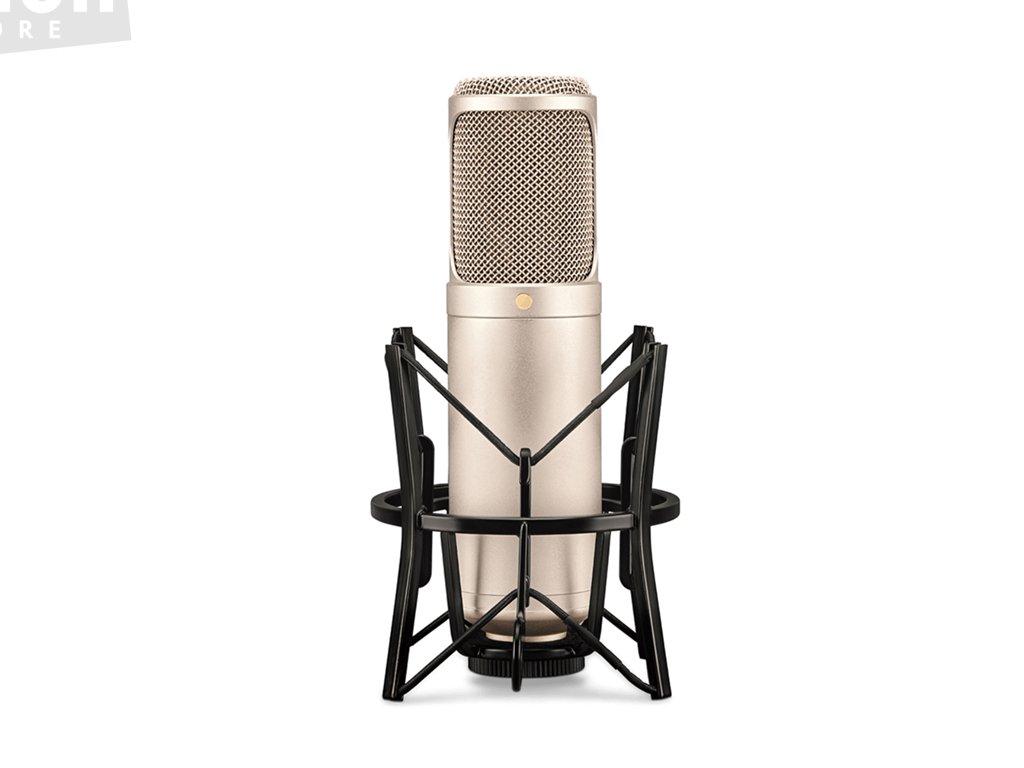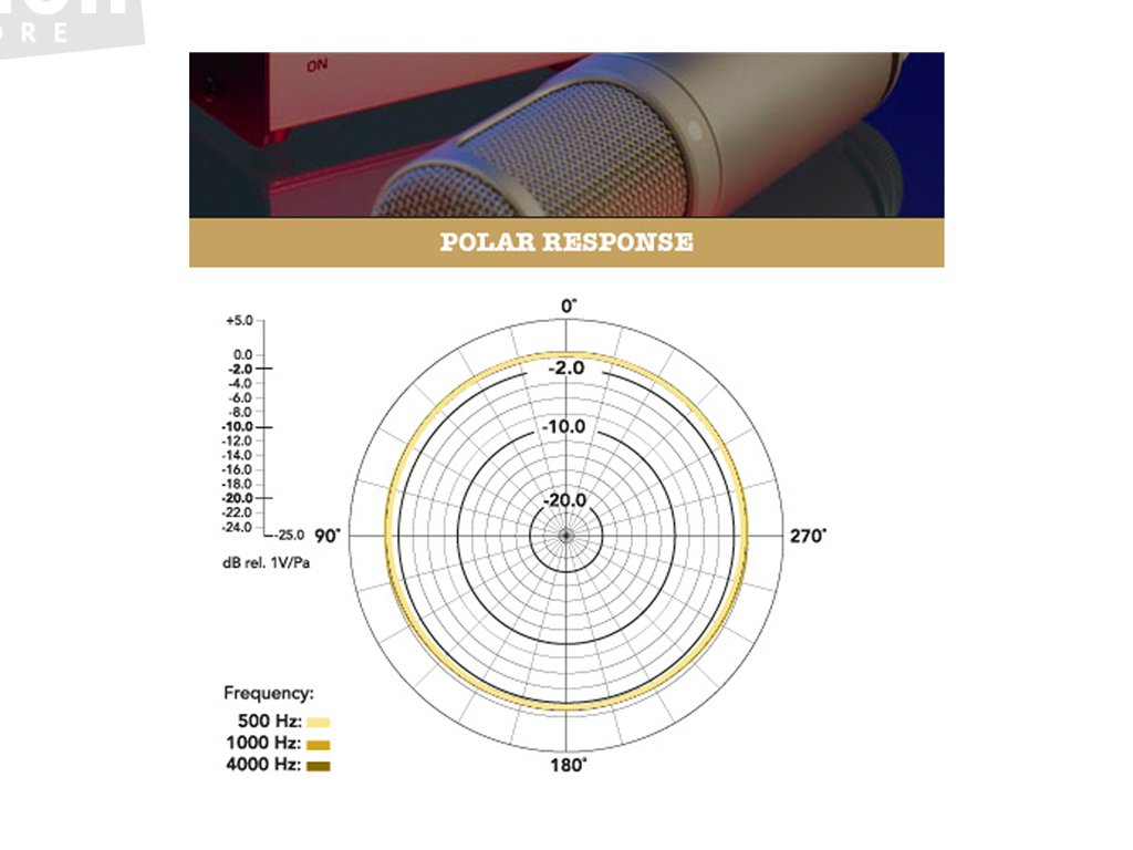 lampový studiový mikrofon pro nejnáročnější použití, široký dynamický rozsah, nízký šum, plynule nastavitelná směrová charakteristika, externí zdroj, protiotřesový koš s pop filtrem
