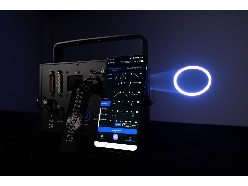 Aplikace je exkluzivně kompatibilní s řadou CUBE a umožňuje vám ovládat laser z vašeho chytrého telefonu nebo tabletu. Její uživatelsky přívětivé rozhraní usnadňuje výběr, vytváření a ovládání laserových show přímo.