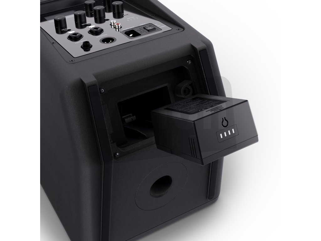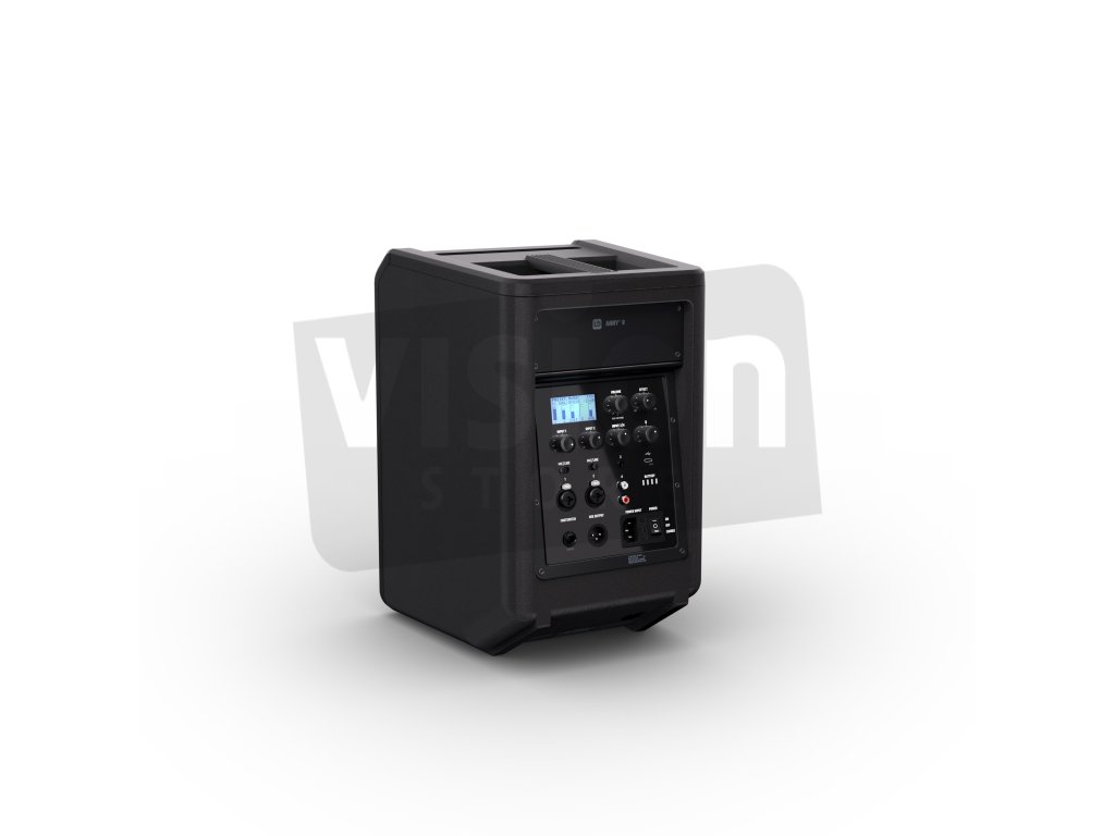 Přenosný bateriový 8" Bluetooth PA reproduktor s 5ti kanálovým mixpultem, výkon 80/160W, baterie 14,8V / 5Ah Li-Ion s dobou nabíjení 5 hod a výdzží až 11 hod,stereo streaming (TWS) mezi dvěma ANNY,USB-C port pro nabíjení tabletu nebo smartphonu,35mm příruba pro použití s reproduktorovým stojanem, barva Stage Black, hmotnost 8,8 kg