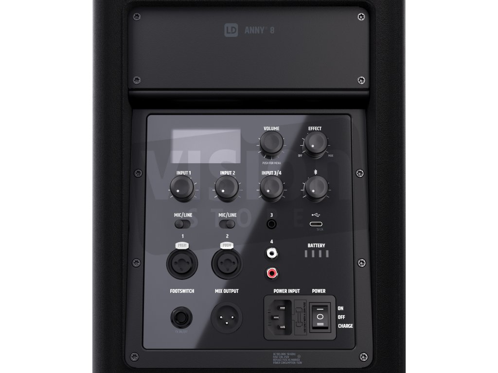 S integrovaným 5kanálovým mixem, 3pásmovým ekvalizérem, 5 předvolbami aplikací (MUSIC, LIVE, VOCAL, ECO, FLAT) a efekty jako reverb & delay kombinuje komplexní funkce a vynikající kvalitu zvuku v kompaktním a nadčasovém designu. ANNY® 8 zaujme svými všestrannými možnostmi připojení: dva kombinované mikrofonní/linkové vstupy, jeden stereo kanál s 3,5 mm jack (AUX) a RCA vstupy a také Bluetooth 5.0 s kodekem AAC.