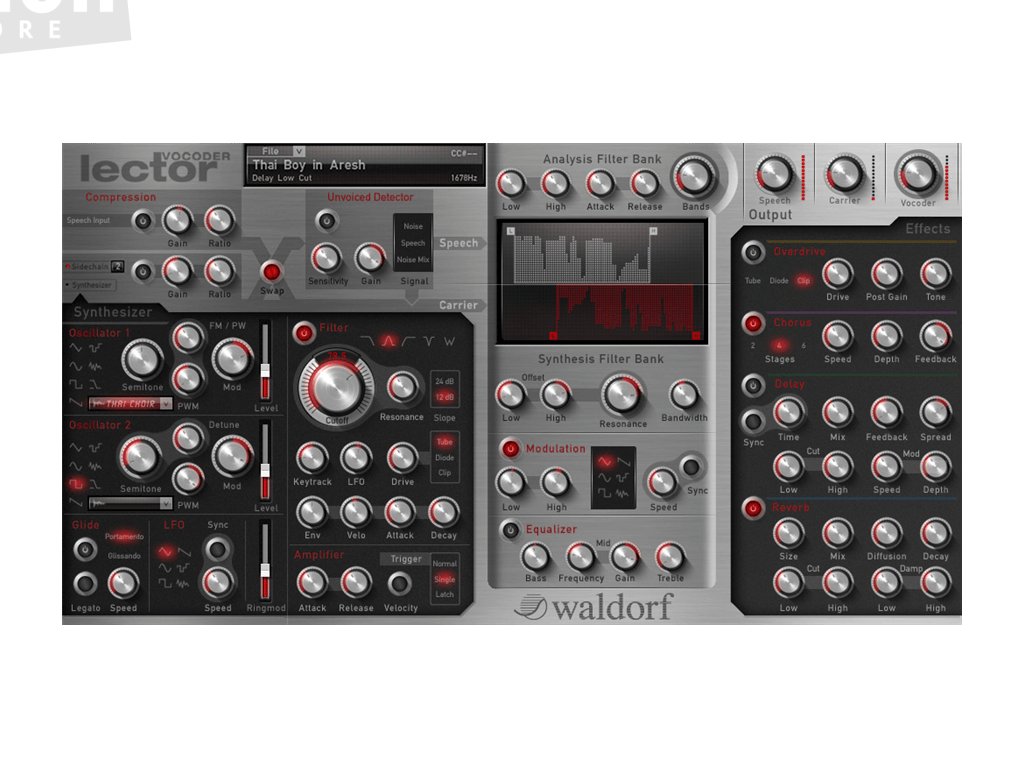 Waldorf Lector je vokálový procesor disponující 3 - 100 pásmovým vocoderem, efekty a 16-hlasím syntezátorem. Nabízí širokou škálu zvuků, banku analýz filtrů, nebo modulátor úrovni hlasitosti.