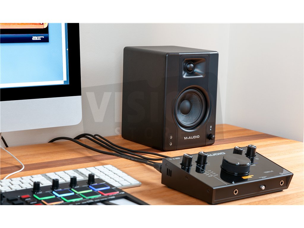 M-Audio BX4 BT jsou studiové monitory, nabízející přesný referenční zvuk za vynikající cenu. Zabudovaný 4,5" karbonový woofer a 1" tweeter zajišťují perfektní poslech a perfektně se hodí jak pro studiovou produkci a poslech, tak i pro běžná multimedia. Nabízejí možnost bezdrátového připojení přes bluetooth, také volby levé/právé strany a 120W výkonu dělají z BX4 jasnou volbu pro amatéry i profesionály.