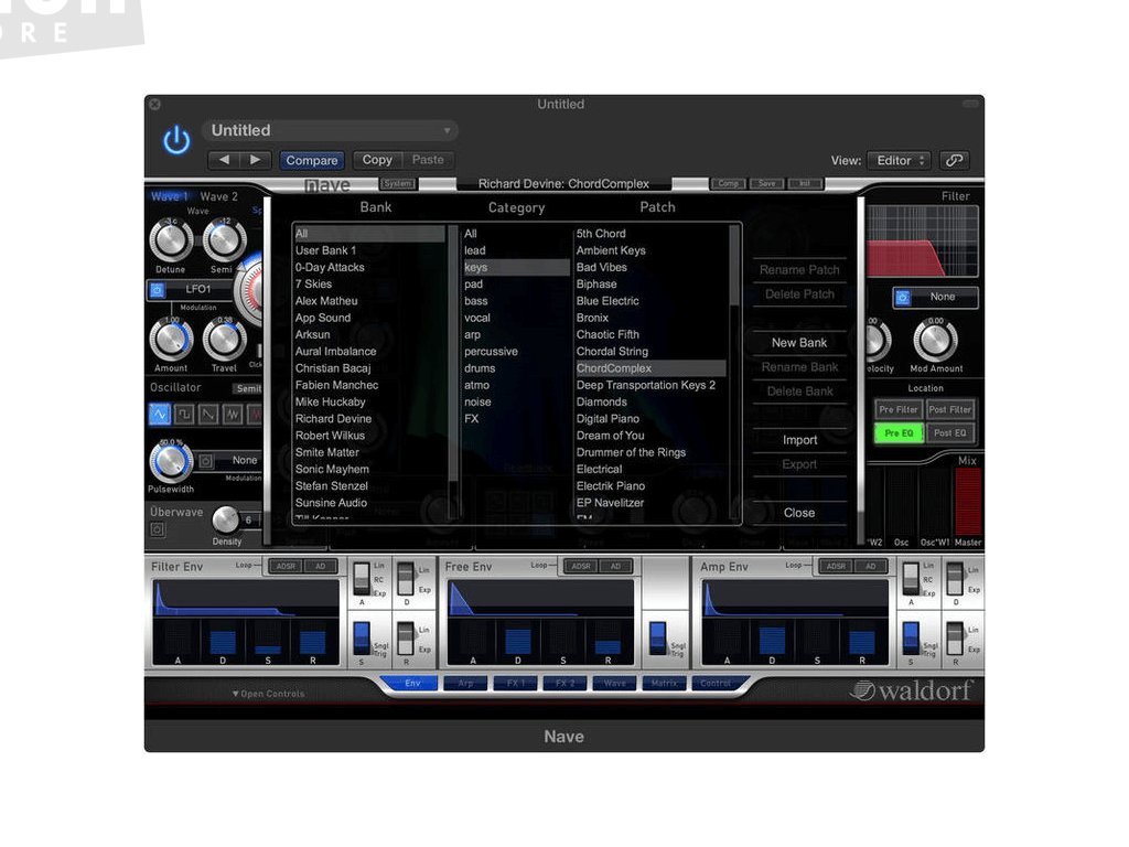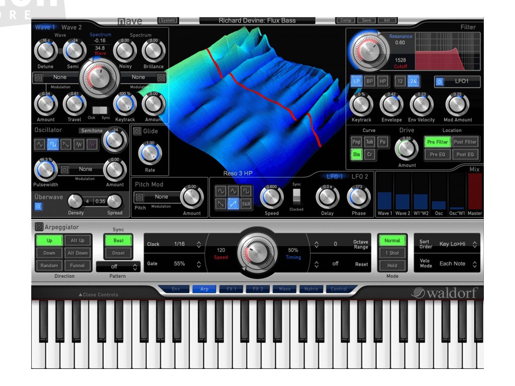 Nejoceňovanější virtuální nástroj od Waldorf! Waldorf NAVE obsahuje dva wavetable oscilátory s nevídanými možnostmi nad rámec běžné vlnové syntézy. Spektrum zvuku může být absolutně nezávislé na frekvenci, samotné vlny mohou být periodické, plně šumové nebo cokoliv mezi tím.