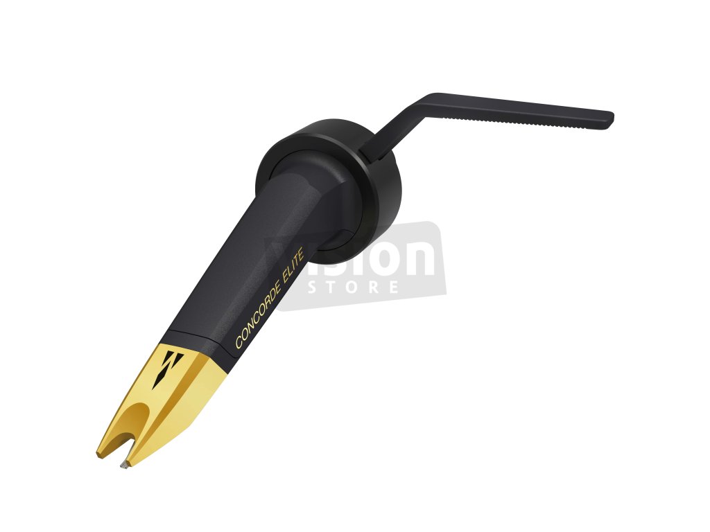 Concorde Elite je vybaven novým, speciálně tvarovaným tělem stylusu s pravým pozlacením, které slavnému designu Concorde dodává luxus. Obalený zlatem je nahý eliptický diamant upevněný na pevné hliníkové konzole. Diamantový stylus Nude Elliptical, který se běžně používá v HiFi přenoskách, poskytuje tak silný a detailní zvuk, že zažijete pozoruhodnou úroveň živého výkonu. Přidání diamantu Nude Elliptical umožňuje menší pohyblivou hmotnost, což zaručuje lepší a detailnější kvalitu zvuku. Štíhlý profil diamantu Nude Elliptical umožňuje přesněji sledovat oscilace drážky, extrahovat složitější detaily a sledovat i informace nejvyšších frekvencí.