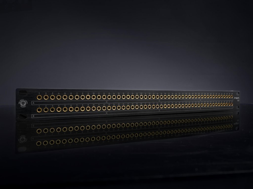 profesionální studiový patching panel s konektory TT a DB-25, 2x48 přípojných bodů, zlacené kontakty, vysoká spolehlivost a dlouhá životnost