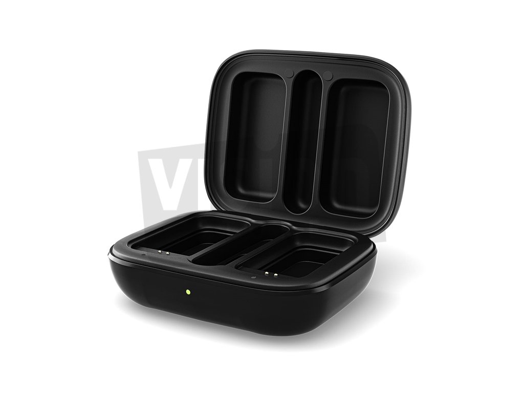 je ochranné přepravní pouzdro pro oba vysílače i přijímač. Současně funguje jako dobíjecí dok, který během dopravy nebo natáčecí pauzy zajistí dobití vysílačů. Může být napájen přibaleným USB-C kabelem, nebo pro dobíjení můžete použít interní akumulátor, který zvládne dvojí plné dobití všech komponent setu.
