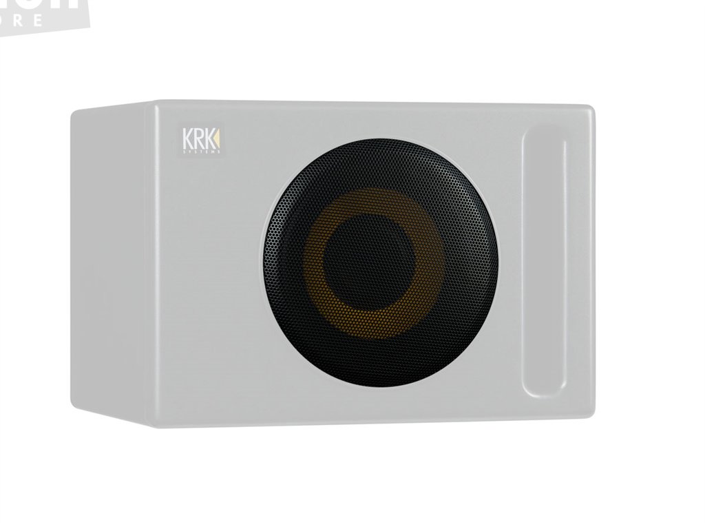 Stylová černá mřížka pro subwoofer KRK S12.4, která účinně ochrání reproduktor.