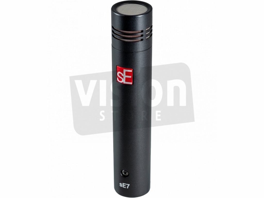 Kondenzátorový mikrofon (trvale polarizovaná vložka 2/3") s kardioidní charakteristikou vynikajících parametrů za nevuvěřitelnou cenu. Díky rychlé odezvě a tedy skvělému přenosu transientů se hodí nejen na melodické nástroje, ale také na perkuse a klidně i bicí sadu. Výbava v této kategorii nevídaná umožňuje zařadit útlumový článek a HPF filtr, a tak lépe využívat dynamický rozsah mikrofoních vstupů. sE7 je osazen nízkoušumovou elektronikou Class A s minimálním zkreslením, a také firemní 2/3" kardioidní vložkou se schopností snášet i vysoký akustický tlak (dovolí si přenés až neuvěřitelných 156dB SPL, takže se bicích bát vážně nemusíte). Vlastnosti: nízký vlastní šum, pozlacený konektor, redukce, větrná ochrana a držák.