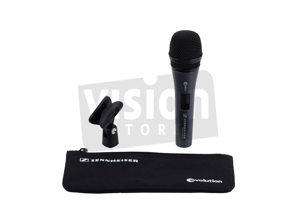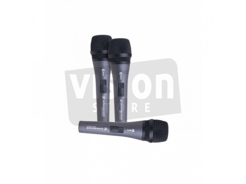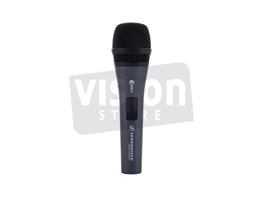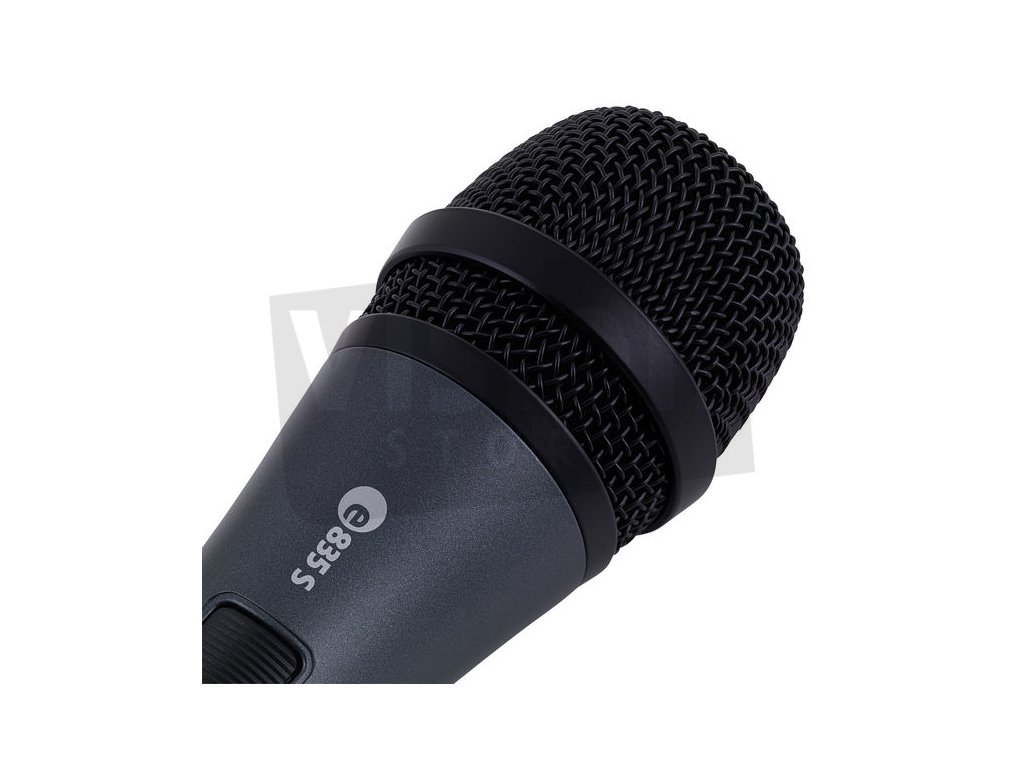 e 835S s vypínačem je kardioidní mikrofon pro nejširší použití se zabudovaným shock-mount systémem. Je vhodný pro snímání zpěvu a hudebních nástrojů, ale také pro velmi dobrou srozumitelnost řeči.