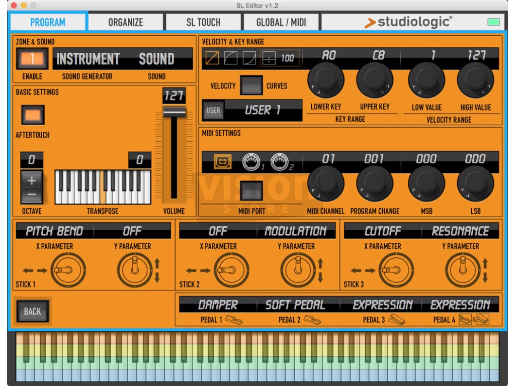 Editor SL nabízí jednoduché a pohodlné uživatelské rozhraní, které má stejnou strukturu jako editace tlačítky přímo na nástroji, přičemž rozšiřuje a integruje jednoduché i kompletní náhledy displaye nástroje. Každý parametr lze snadno editovat a všechny změny se synchronizují s nástrojem v reálném čase.