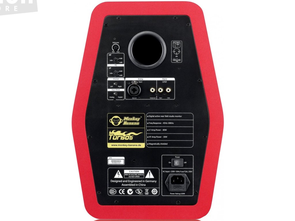 Monkey Banana Turbo 8 je dvoupásmový aktivní monitor určen do velkých poslechových režií, kde se svým 8” wooferem s magneticky stíněnou polypropylen/keramickou membránou a 1” hedvábným tweeterem nabídne dostatečný výkon pro dokonalý přednes vašich mixů.
